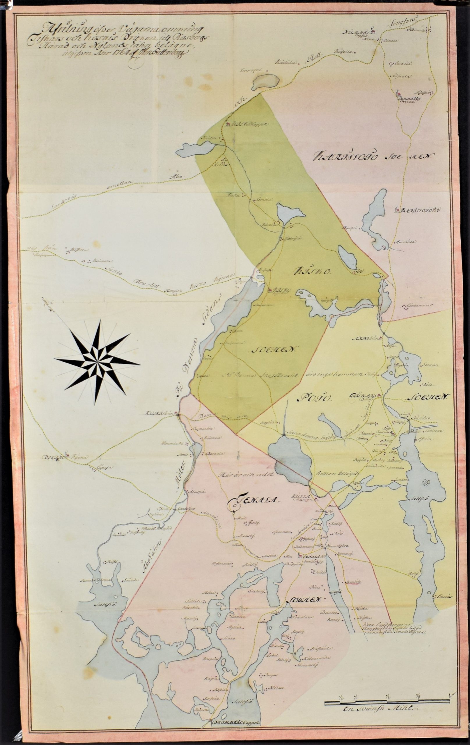 Afritning öfver vägarna omkring Fiskars och Koskis Bruk, uti Rasborgs Härad och Nylands Lähn utgifven Åhr 1764 Af Hans Fattenborg