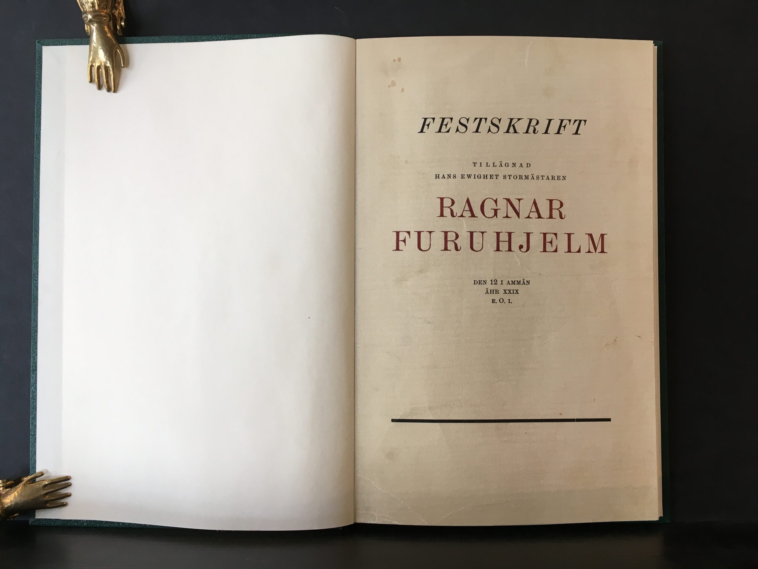 “Festskrift tillägnad hans ewighet Stormästaren Ragnar Furuhjelm den 12 i Ammån åhr XXXIX E.O.I.”