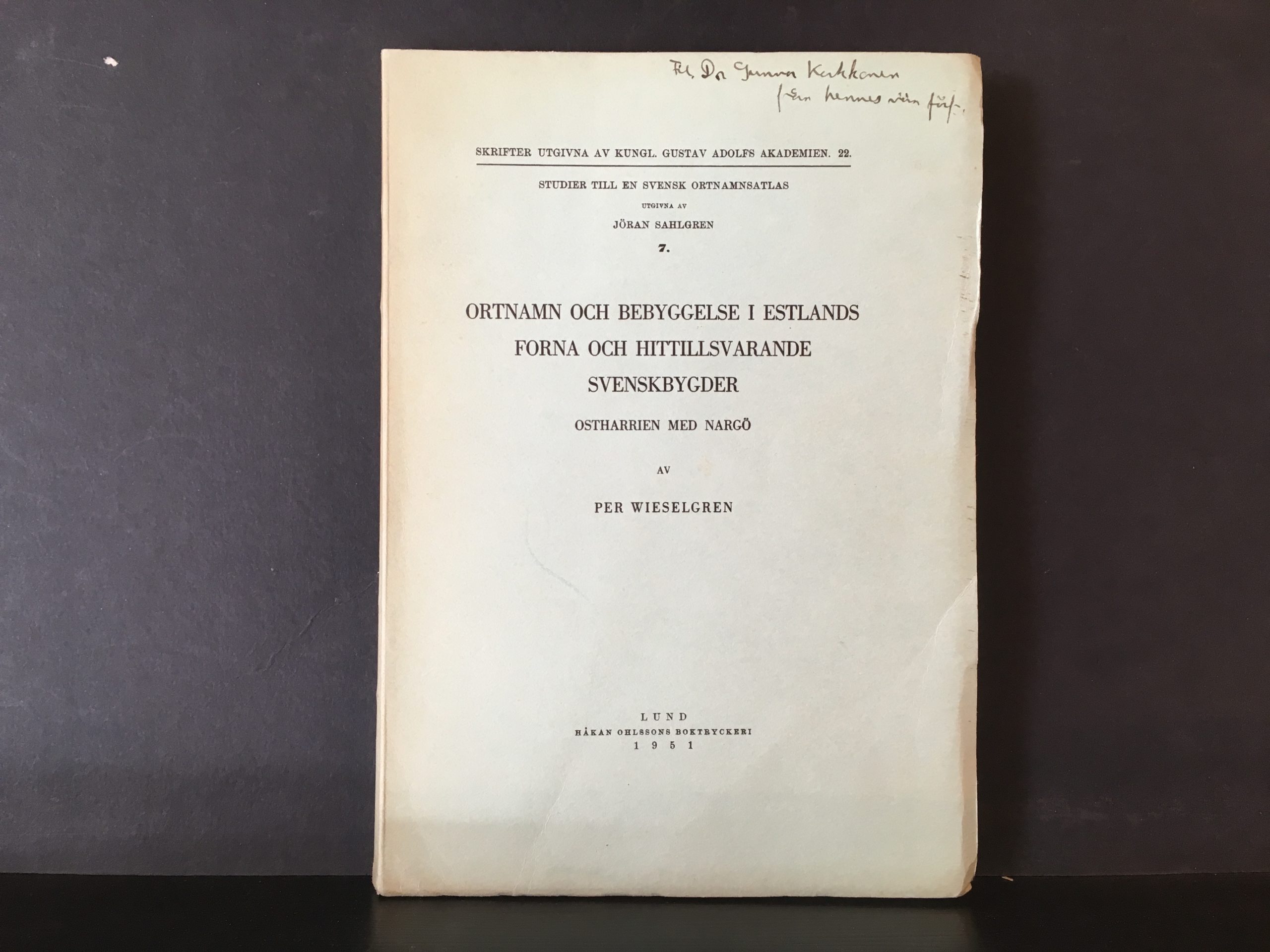 “Ortnamn och bebyggelse i Estlands forna och hittillsvarande svenskbygder. Ostharrien med Nargö”